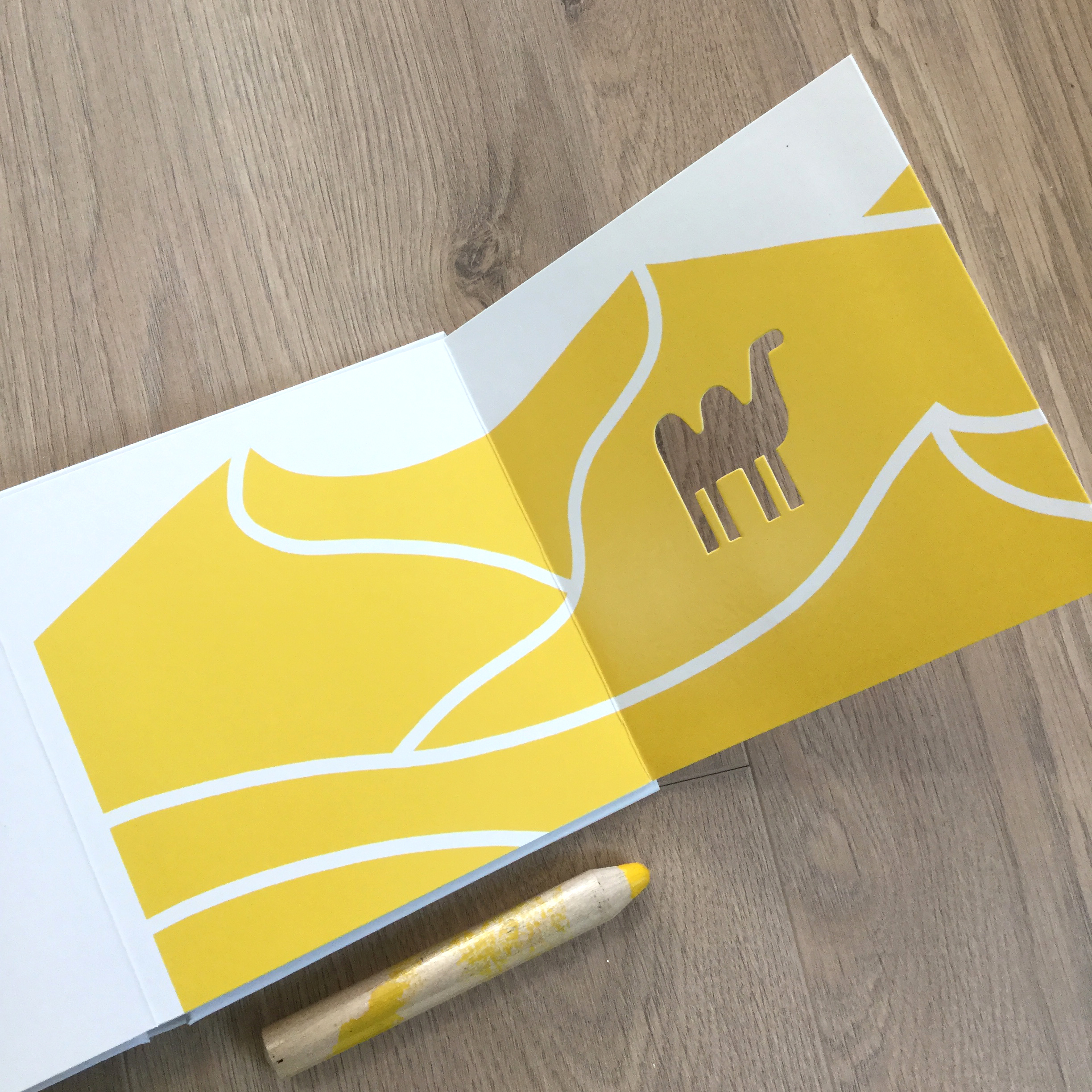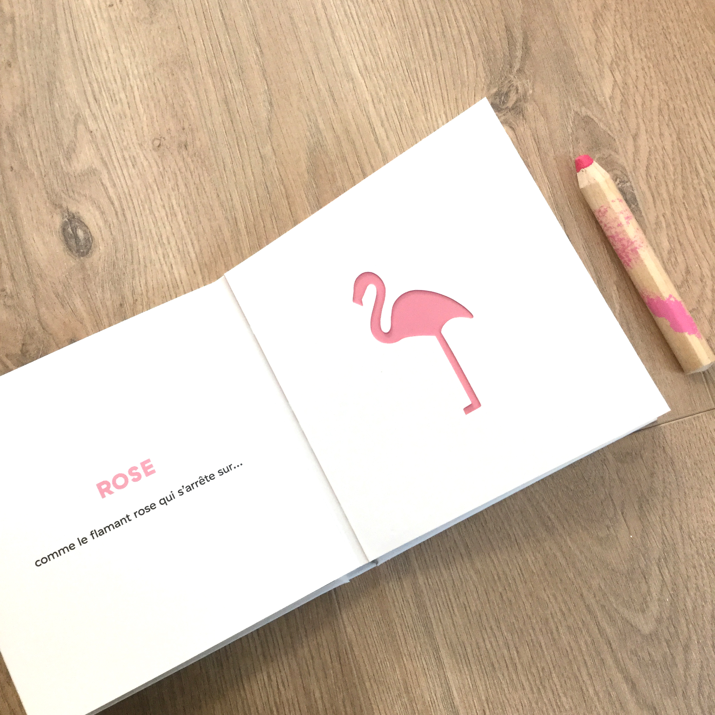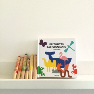 Ce tout carton propose de découvrir des animaux DE TOUTES LES COULEURS : blanc, vert, turquoise, bleu, violet, rose, rouge, marron, orange, jaune, gris et noir. Chaque couleur est associée à un animal. Et chaque animal est associé à son lieu d’habitation. Chacun est à découvrir au travers de sa silhouette stylisée et découpée dans la page, page que l’on ouvre pour découvrir le lieu d’habitation tout en couleur lui aussi. Ce petit livre est donc très complet puisqu’on y apprend le nom des couleurs, des animaux, leur lieu d’habitation et même le vocabulaire des verbes de déplacement.
