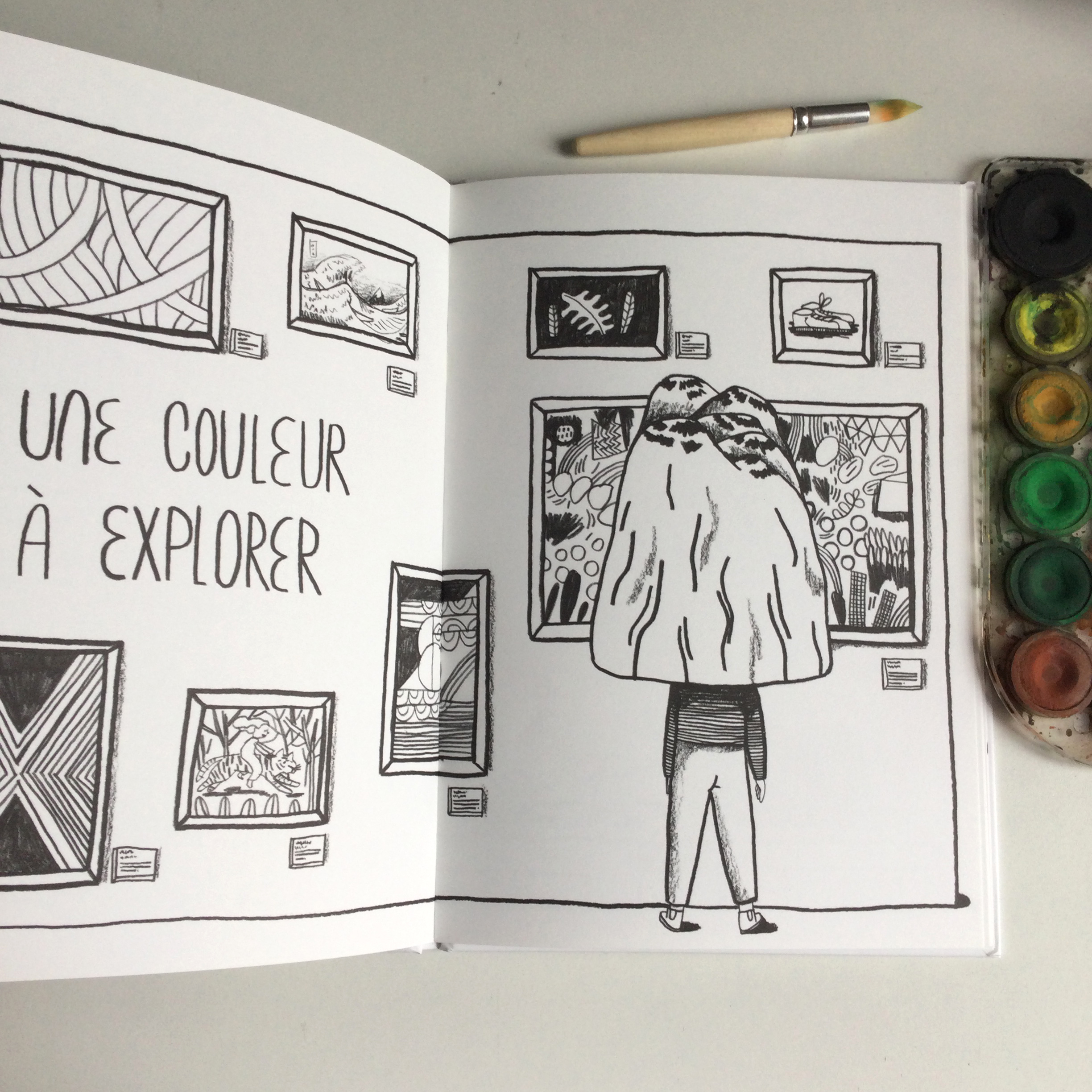 Une petite fille aux pommettes tachetées et à la chevelure généreuse se promène et nous confie ses inspirations et ses découvertes. Au travers du jeu, d’une exposition, de livres dévorés, d’une musique écoutée ou encore par le biais de son appareil photo… Les chemins sont tous prétexte à l’exploration, à l’émotion et enfin au partage. Et ça cogite là-dedans (!) tellement que les cheminées des petites maisons sur les collines de la tête de cette petite fille se mettent à fumer.