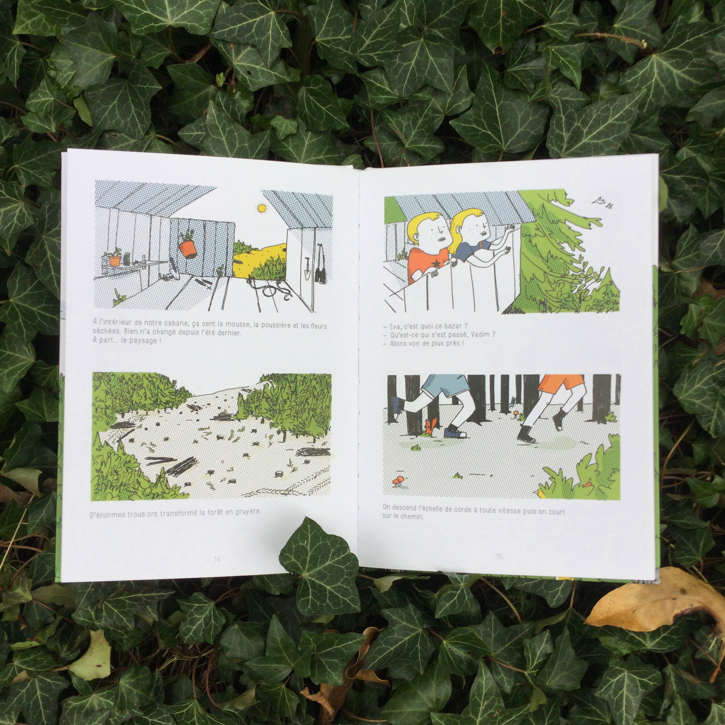 Cette fois-ci, les deux détectives en herbe se prénomment Eva et Vadim. Ils se retrouvent chez leur grand-mère affectueusement appeler Mamounette pour les vacances d’été, vacances qui vont leur réserver bien de mauvaises surprises. En effet, depuis leur cabane haut perchée qui leur sert de QG ils s’aperçoivent que la forêt environnante est bien amochée. Et c’est peu dire ! Des bûcherons font vraisemblablement de la contrebande de bois ! Aidés du garde forestier et de Mamounette l’équipe va tenter de découvrir ce qui se cache derrière ce trafic qui ressemble bien à l’abattage illégal d’arbres !