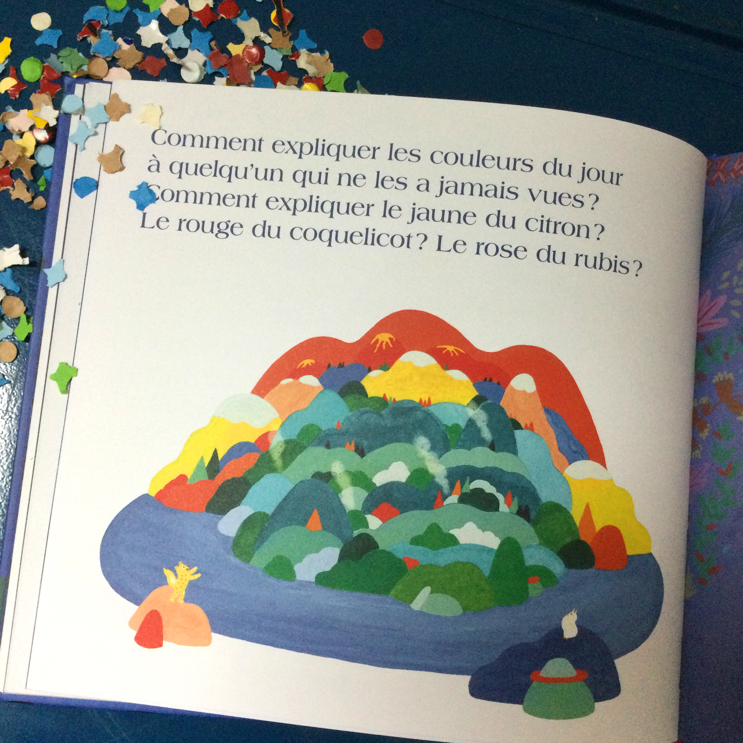 Finalement, le petit animal bizarre va instruire ceux qui ignorent tout du monde diurne. Et pour cela quoi de mieux qu’une petite virée le jour, au lever du soleil, à la découverte des couleurs qui se révèlent partout ?
