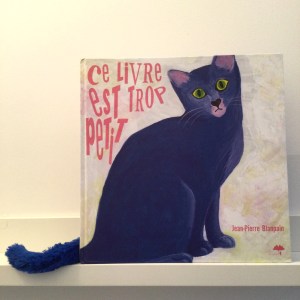 Malgré son grand format, (30×30 tout de même !) CE LIVRE EST TROP PETIT pour tous les animaux qui s’y sont glissées. Visiblement Jean-Pierre Blanpain était un peu trop près des animaux pour les peindre en entier. Ainsi, nous découvrons sur chaque double page un animal qui râle ! En effet, chaque illustration est accompagnée d’un jeu de mots propre à chaque animal qui nous fait comprendre que CE LIVRE EST TROP PETIT ! Vous l’aurez compris l’imagier présente donc une suite d’animaux qui sortent littéralement du cadre.