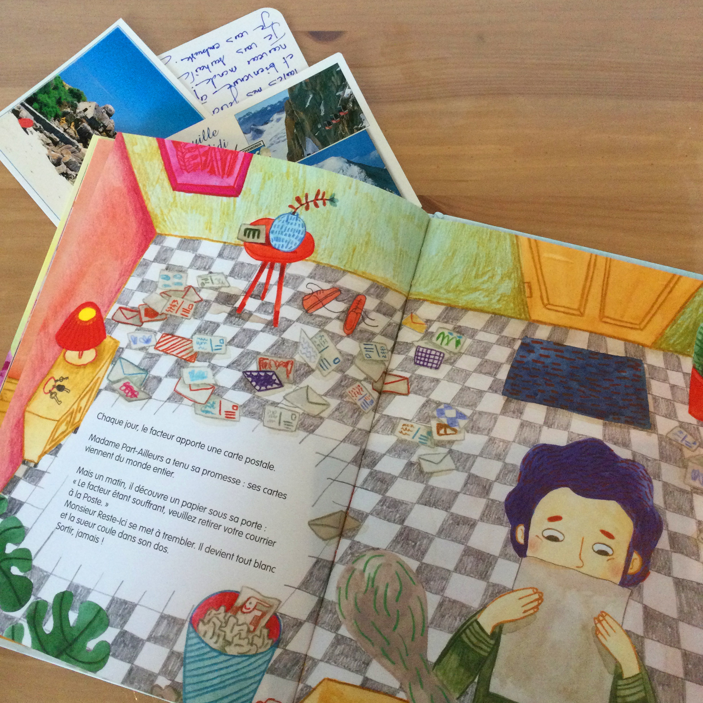 Madame Part-Ailleurs repart presque aussi vite qu’elle est arrivée mais en laissant un souvenir impérissable dans l’esprit (et le cœur !) de Monsieur Reste-Ici. Le triste clown reçoit désormais des cartes postales de cette femme débarquée dans sa vie, elle tente ainsi de faire voyager son ami. Lorsqu’un jour celui-ci va être contraint de sortir de chez lui…