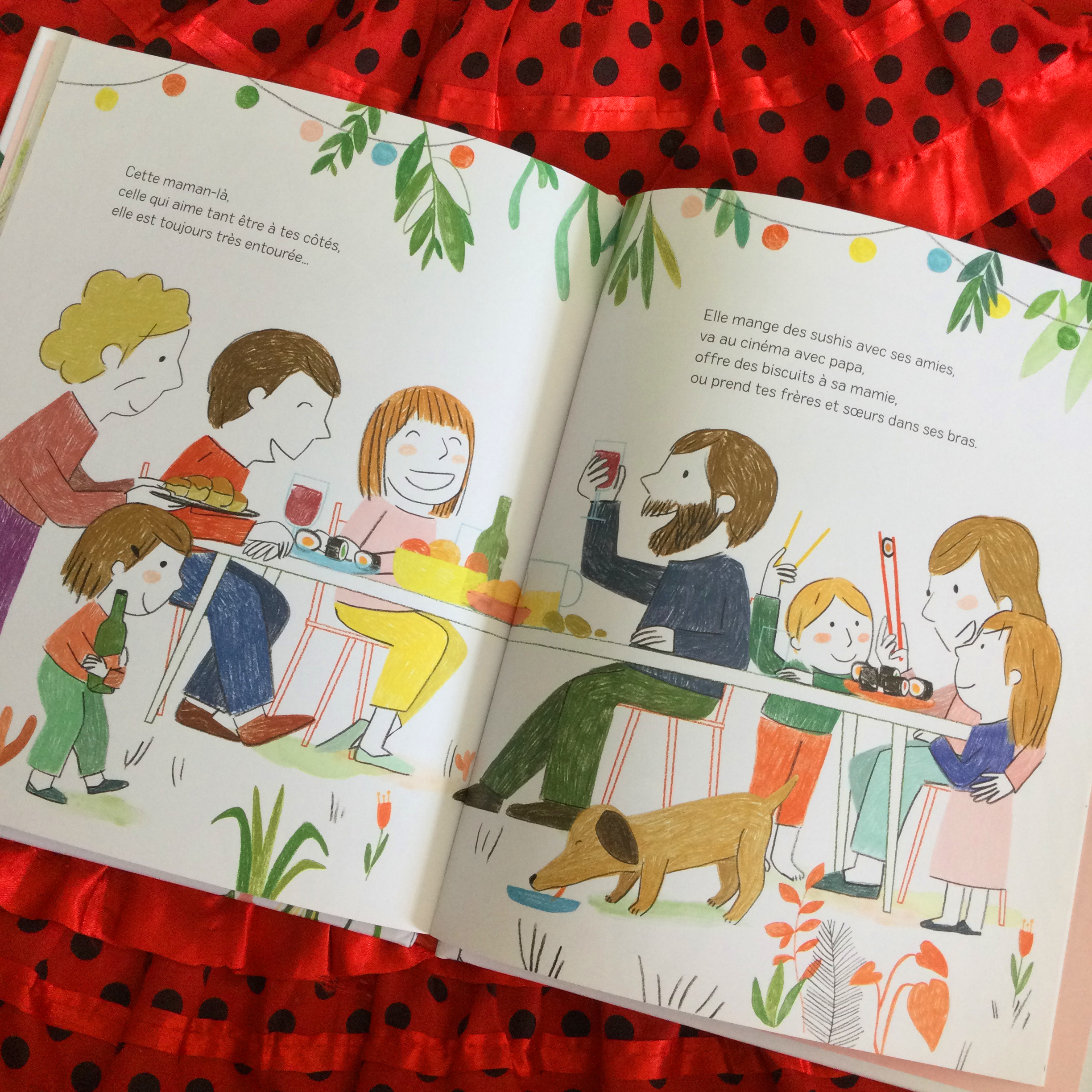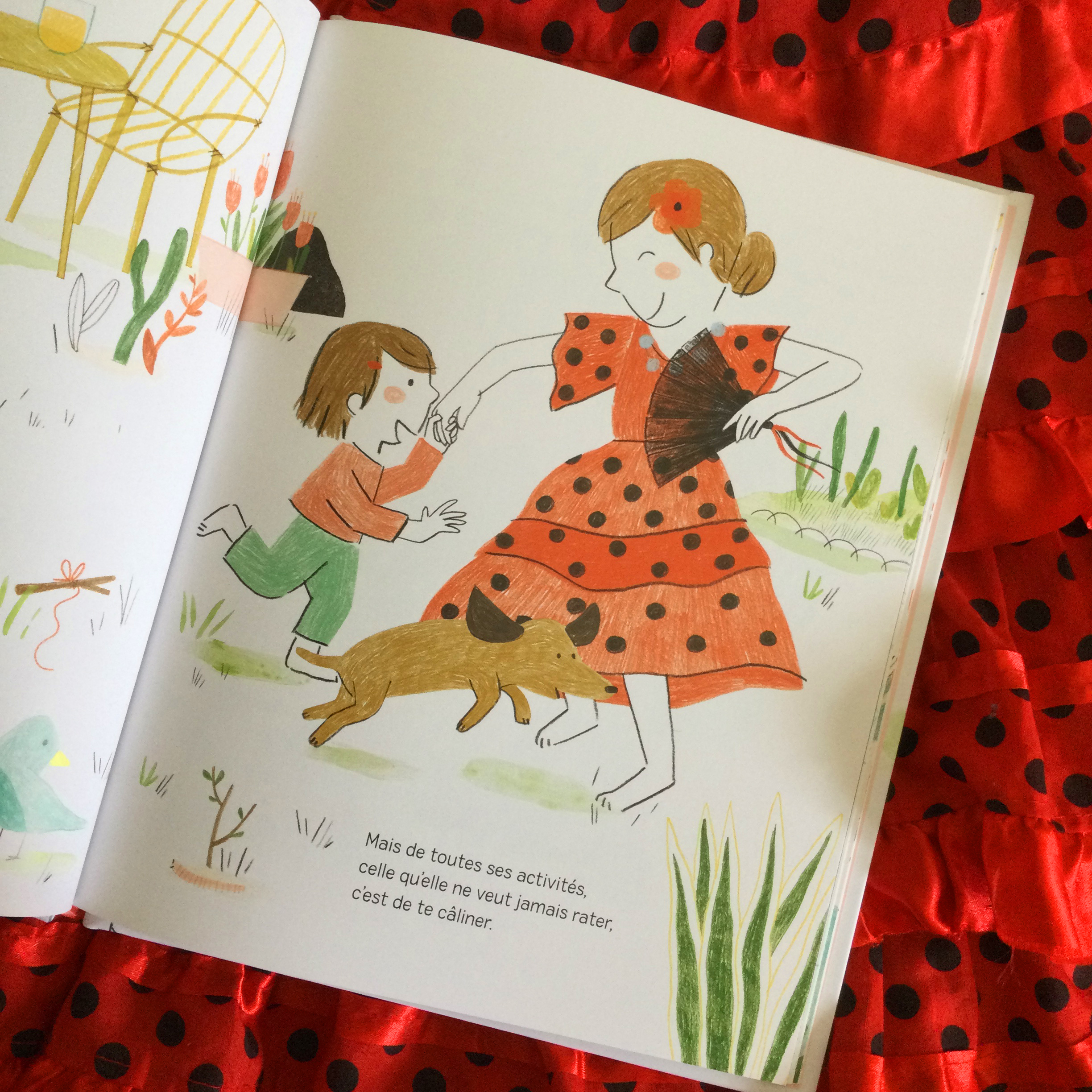 « Cette maman là, celle qui t’aime à la folie, elle a une vie bien remplie… Elle danse le flamenco, s’entraine au lancer de couteaux, organise des concours d’escargots ou fait des graffitis incognito. »