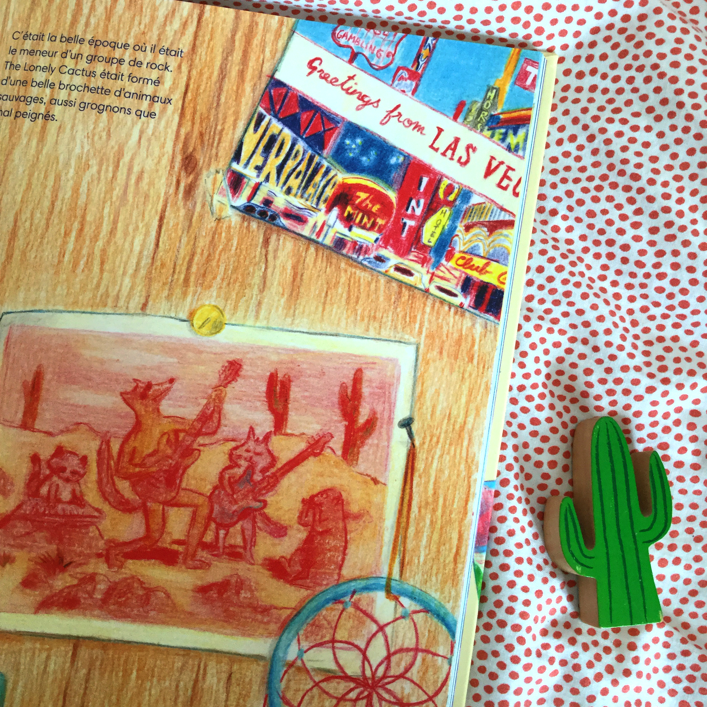 À mi-chemin entre le grand album et la BD, avec un tel scénario rocambolesque et une palette colorée absolument superbe, LES ANIMAUX DE PALM SPRINGS est LE livre dont nous voulions vous parler aujourd’hui en ce jour de la fête de la musique !