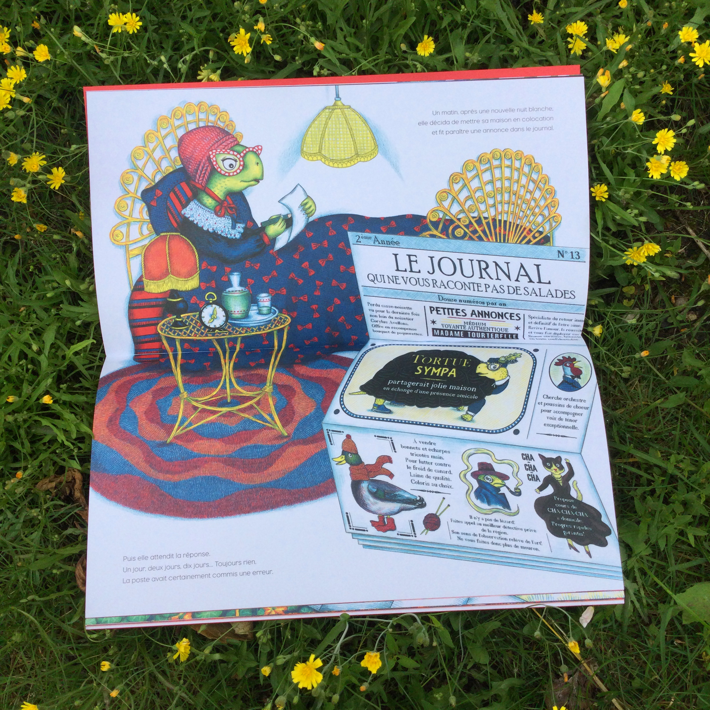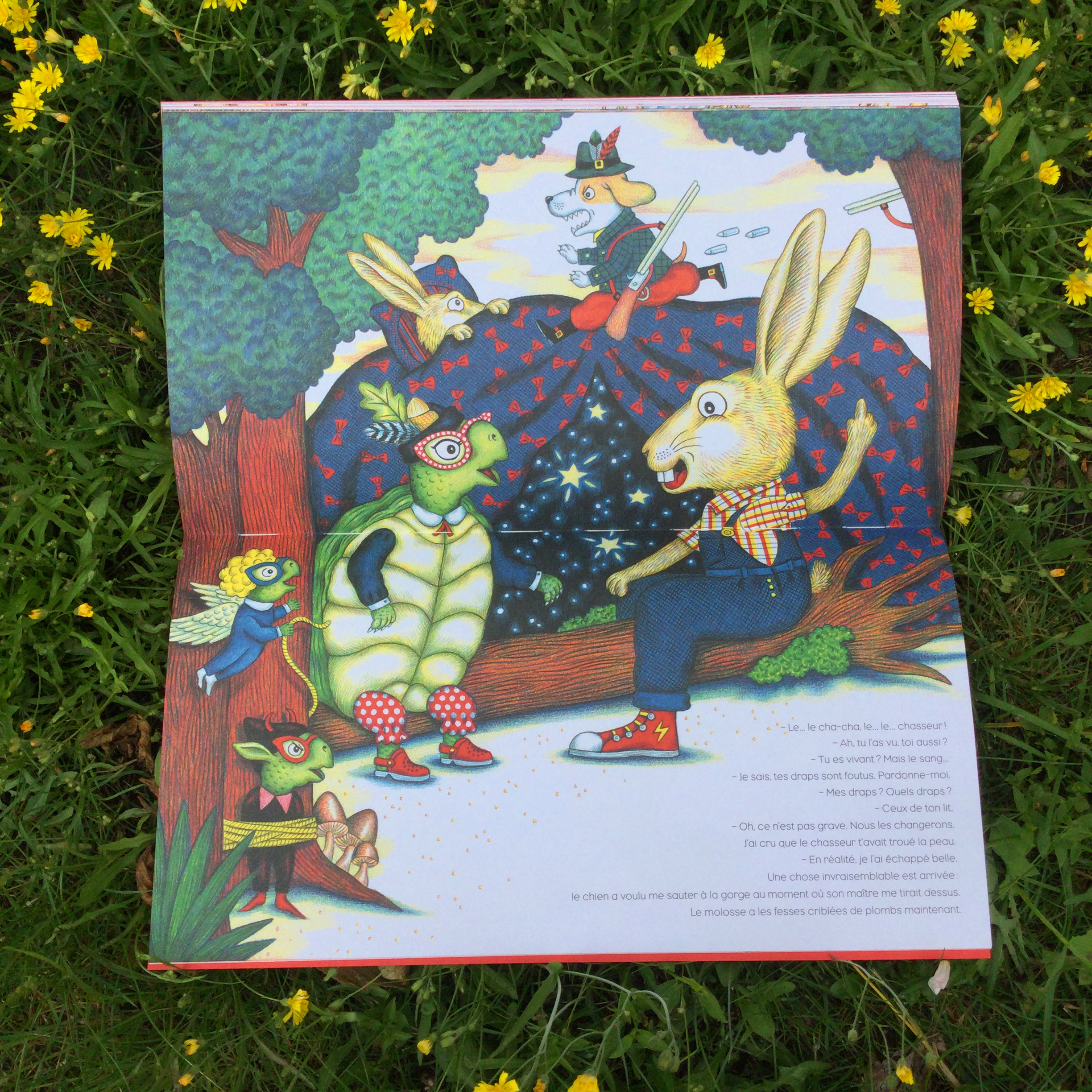 Un jour, se sentant bien seule, la tortue décide de passer une petite annonce pour proposer une colocation… dans sa carapace ! Et peut-être le savez-vous, trouver le colocataire idéal est bien difficile… Après avoir recalé un éléphant et une fourmi, la tortue passe un contrat avec un lièvre. Quel idée ! Aveuglés par leur envie de cohabiter ils seront vite rattrapés par leurs différences qui compliquent la colocation évidemment. La tortue fini par éprouver une vraie détresse face au colocataire qui prend petit à petit des airs de squatteur. Voilà qui lui donnera matière à râler ! Pourtant lorsque le chasseur arrive la tortue ne se pardonnerait pas s’il arrivait quelque chose de malheureux au lièvre.