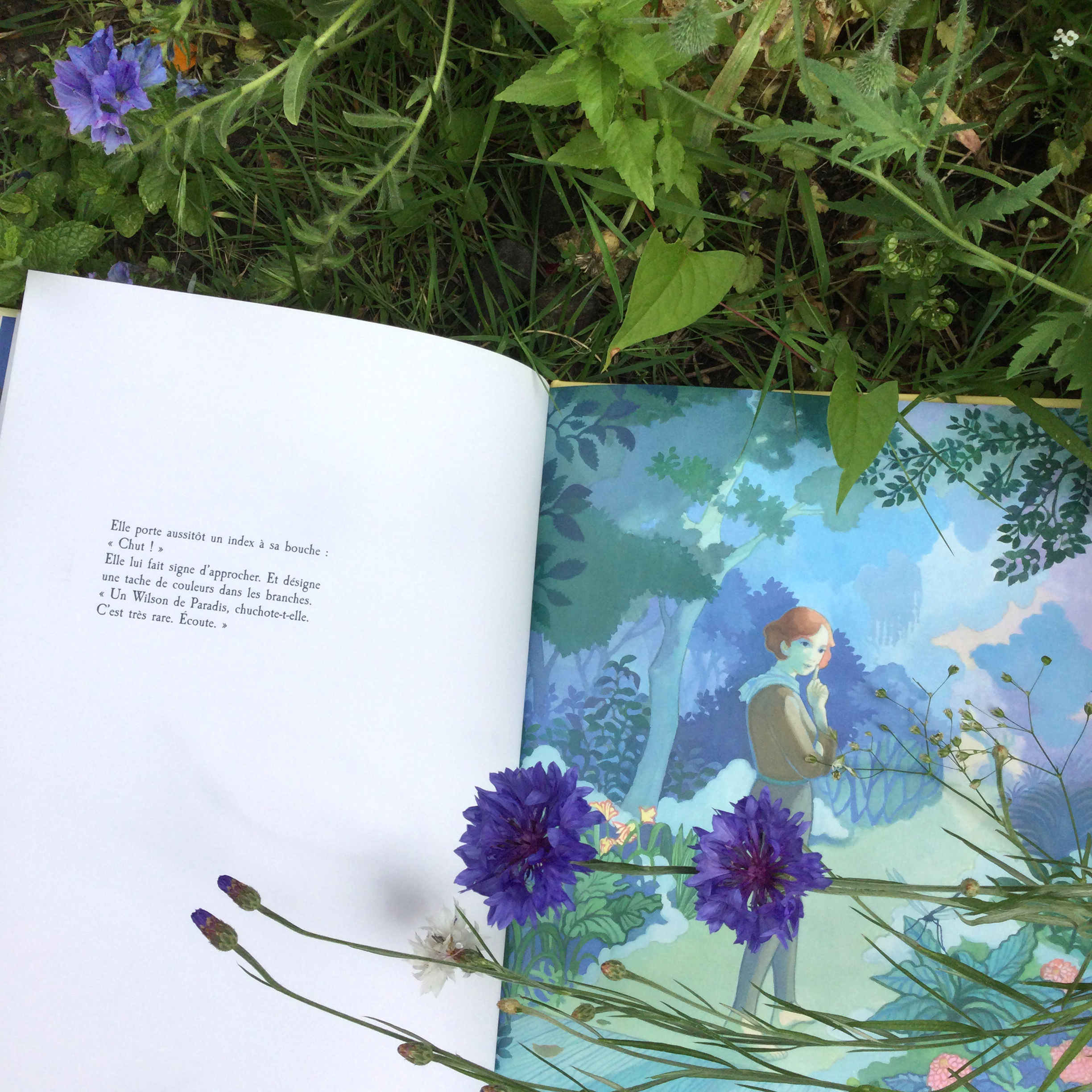 « Samuel tend l’oreille. L’oiseau chante, siffle, crie… Un vrai feu d’artifice. Puis il s’envole. Tante Eléonore se précipite alors dans la maison. »
