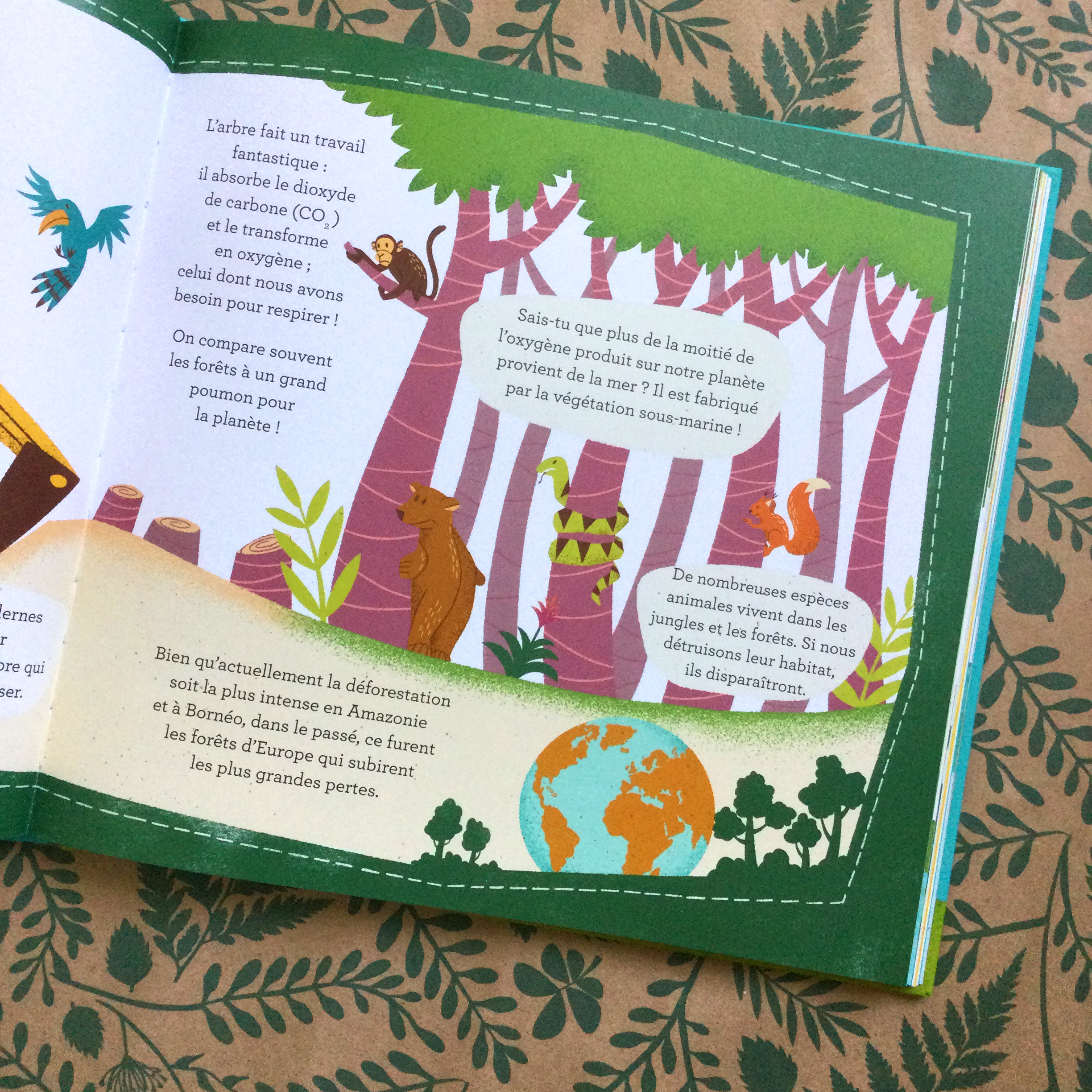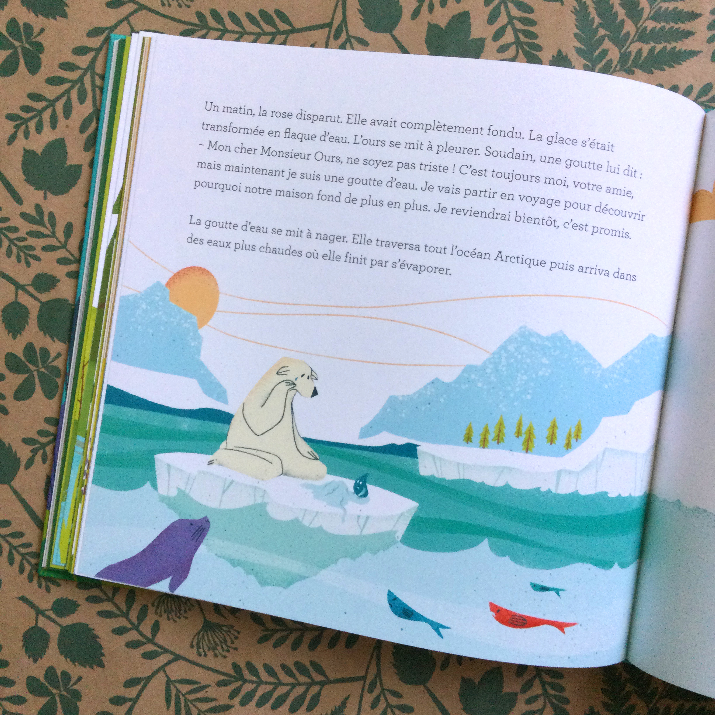 Chaque histoire est optimiste tout en transmettant à hauteur d’enfants les enjeux écologiques. La mer de plastique, la déforestation, le cycle de l’eau, les abeilles essentielles pour l’écosystème, le réchauffement climatique, l’énergie. Voilà un gros programme ! Mais tout cela est parfaitement accessible à travers les histoires, également à la lecture de la double page documentaire qui vient clore chaque histoire. Ces 6 CONTES POUR LA PLANETE réussissent à allier problèmes et solutions ! Il y a comme un savant mélange de ce que l’on aime dans les livres pour enfants de l’ordre de l’imaginaire, le tout en gardant les pieds bien sur terre.
