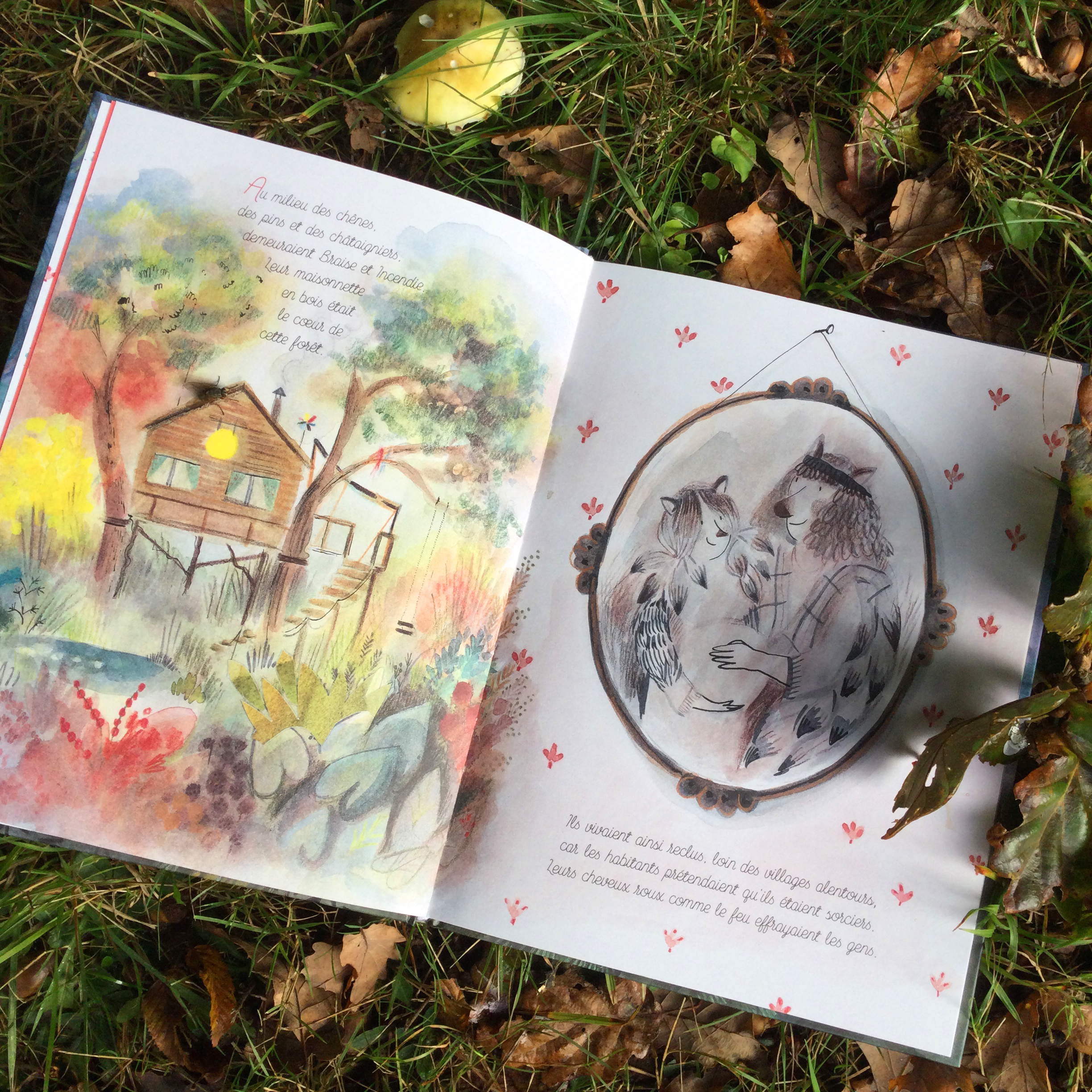 « Au milieu des chênes, des pains et des châtaigniers, demeuraient Braise et Incendie. Leur maisonnette en bois était le coeur de cette forêt. »