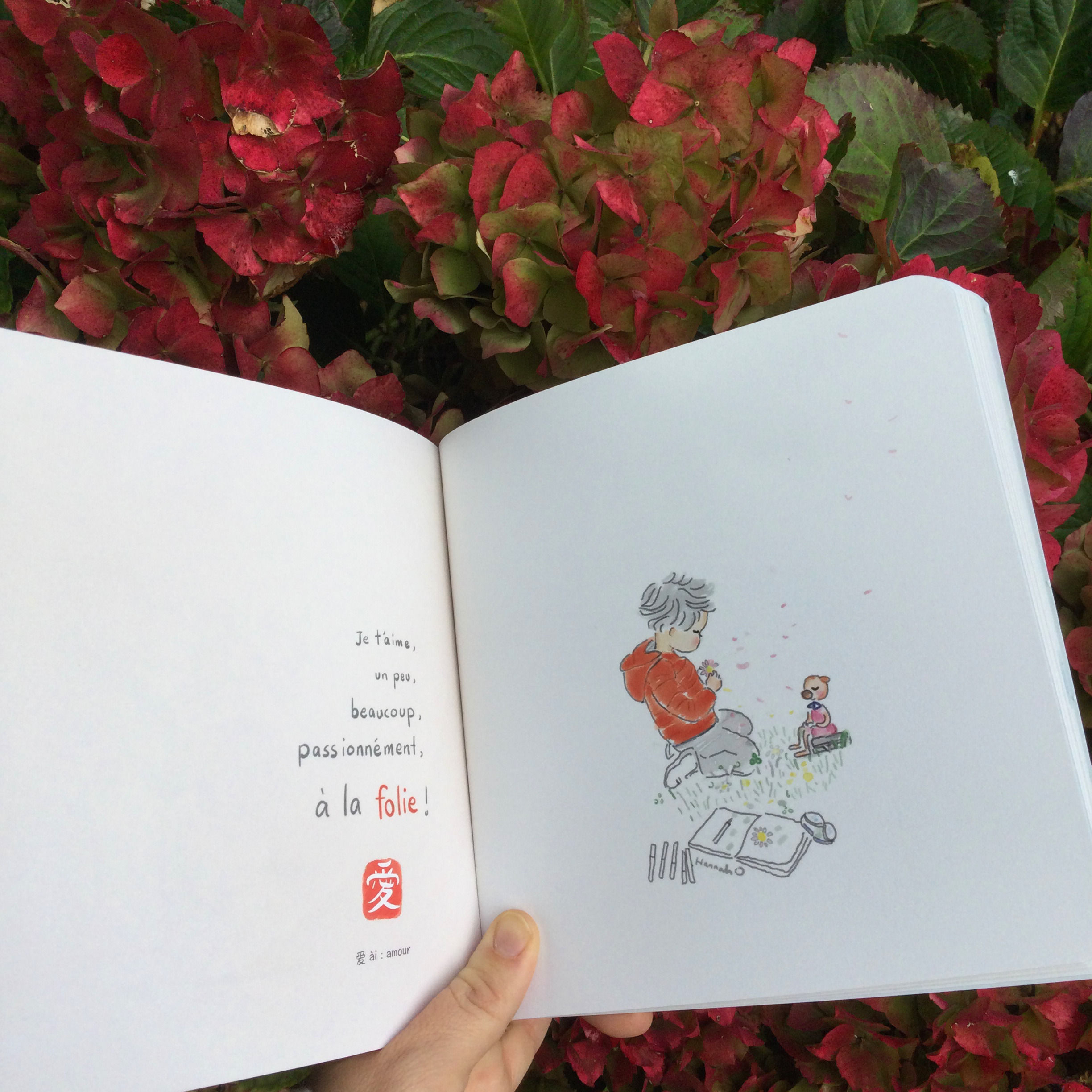 POUR CEUX QUI S’AIMENT À TOUT VENT c’est aussi l’histoire d’une famille mixte où on devine que l’amour porte l’apprentissage du chinois ! Les idéogrammes présents au fil des pages, intriguent et réjouissent.