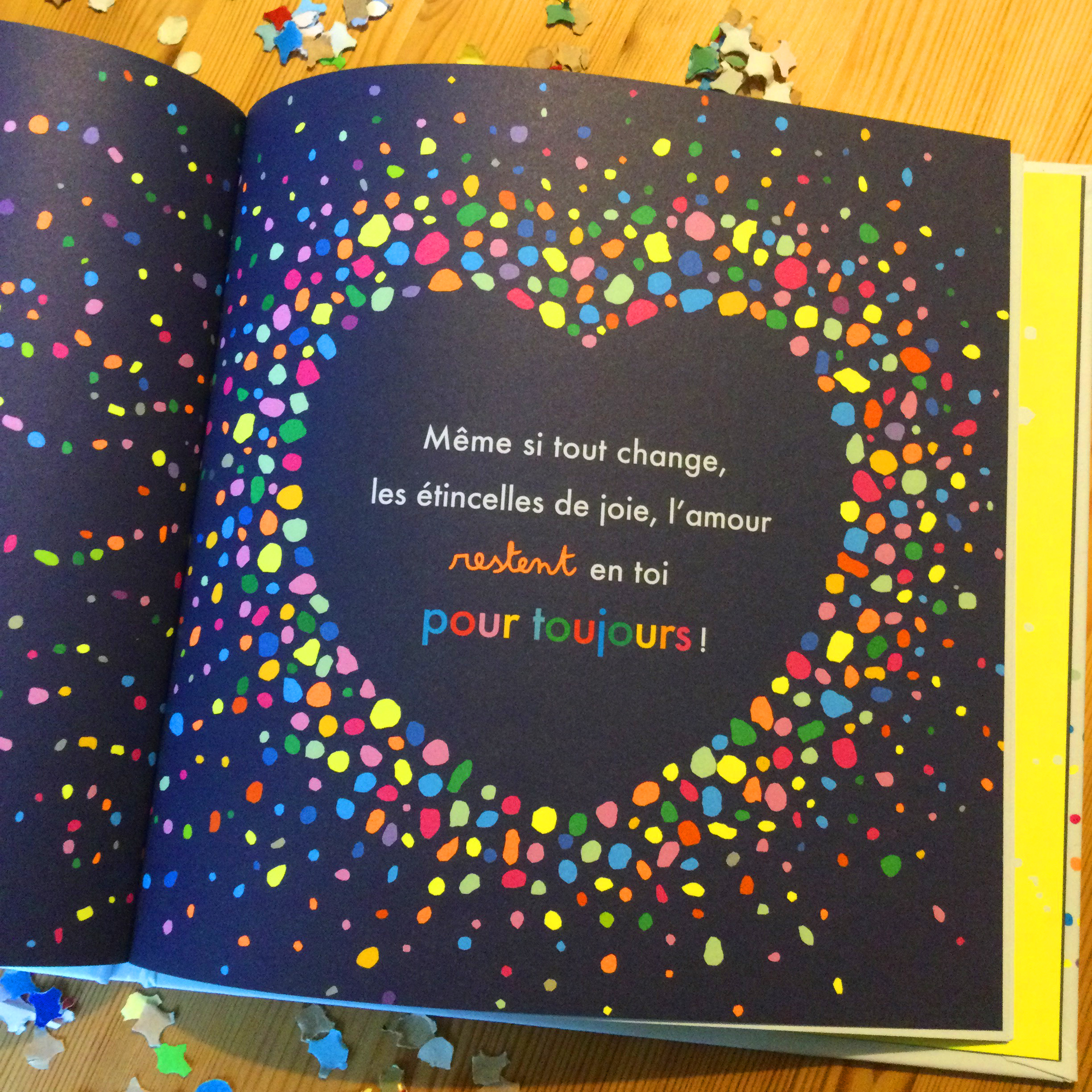« Même si tout change, les étincelles de joie, l’amour restent en toi pour toujours ! »