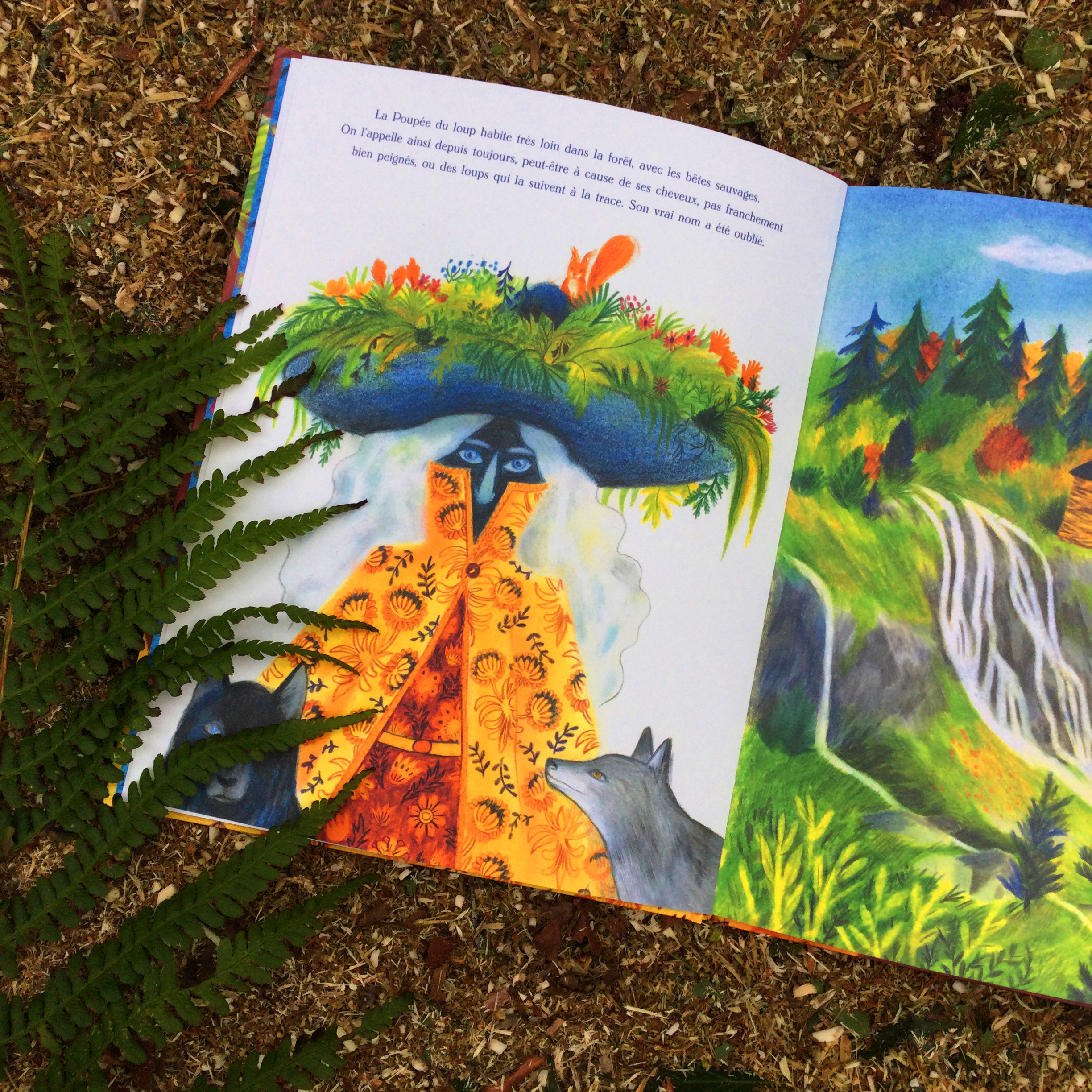 Une femme à la chevelure blanche et généreuse, au visage bleu et au chapeau garni, une femme dont on ne sait plus le véritable prénom ni même l’âge, une femme que l’on surnomme la Poupée du loup, vit dans la forêt entourée de bêtes sauvages et de loups. Cette femme étrange mais bien inoffensive est rejetée par les habitants du village auprès desquels, elle cherche pourtant un peu de lien social. Elle qui aime sculpter et jardiner va décider d’ouvrir son grimoire délaissé afin d’y dénicher la recette de L’ÉTERNITÉ. Si elle pouvait offrir L’ÉTERNITÉ aux villageois peut-être qu’ils l’accepteraient telle qu’elle est.
