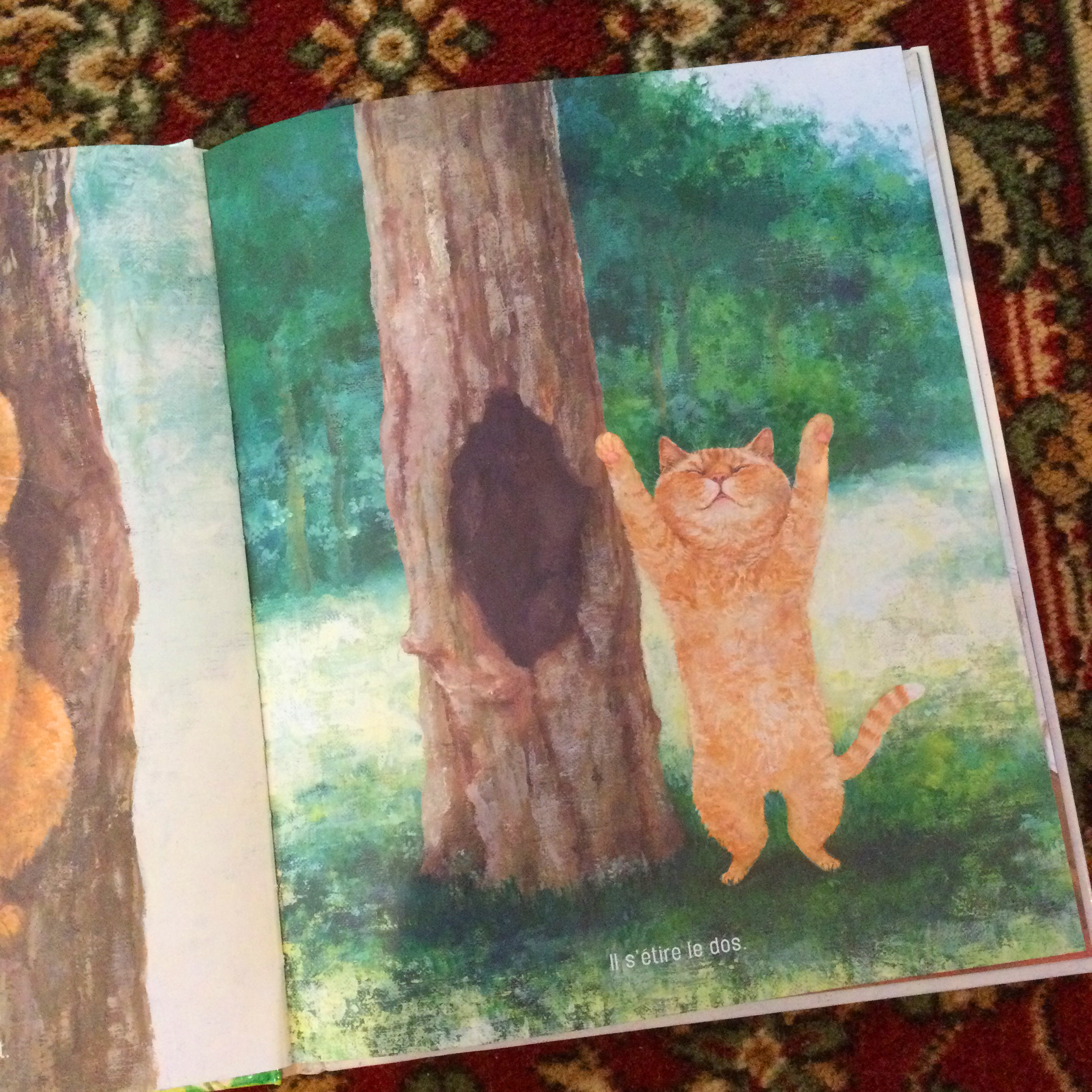 D’abord il attend que son humain sorte puis lui-même part là où ses moustaches le mèneront. Il commence par un petit café, passe chez le coiffeur, s’accorde un petite virée dans une bonne librairie, et pourquoi pas une séance de cinéma ? Après le réconfort il faut tout de même qu’il fasse un effort… Il va donc pêcher ! La pêche est trop longue ! Cela mérite à nouveau un peu de réconfort… Le voilà qu’il prend la direction du spa (et non pas de la SPA !) pour une bonne toilette en bonne et due forme.