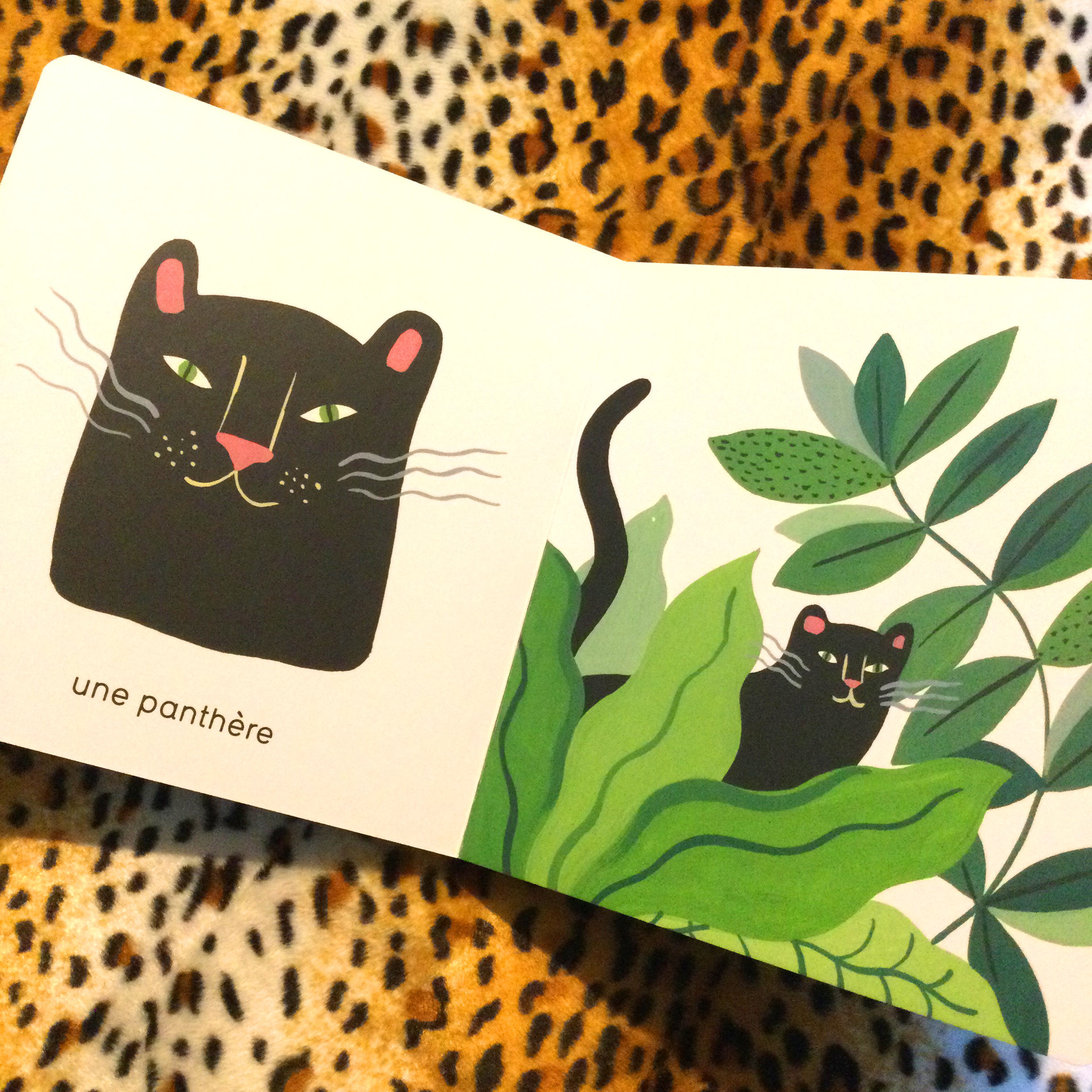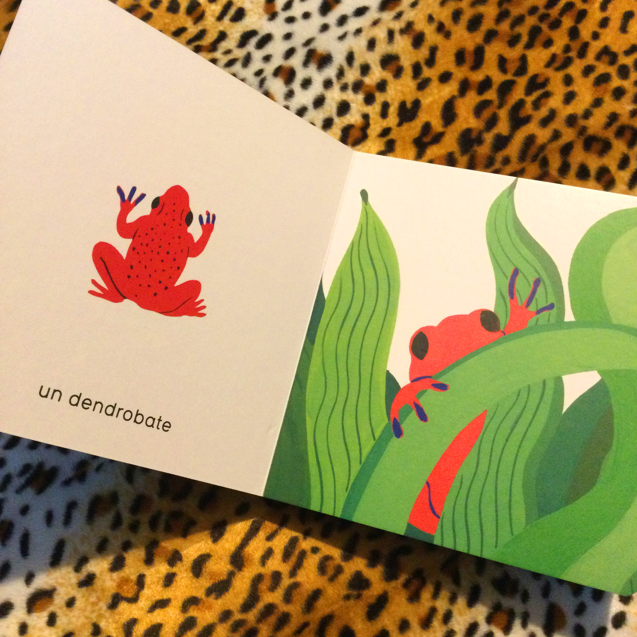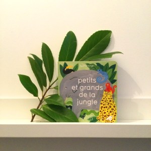 Est mise en avant la différence entre petit et grand sur fond de jungle, avec un choix original d’animaux généralement peu visibles dans les imagiers ! Du plus petit dendrobate (une minuscule grenouille) jusqu’à l’éléphant le plus grand, en passant par un ouistiti, un magnifique toucan, ou encore une panthère malicieuse découvrez 9 PETITS ET GRANDS DE LA JUNGLE ! Chaque animal (parfois avec un nom étrange, certes !) est présenté seul puis dans son habitat, dans la belle végétation stylisée d’Agathe Singer.