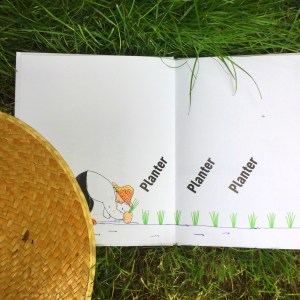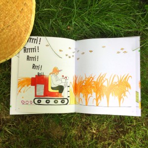 C’est un album à lire à voix haute pour entendre le riz pousser : les mots et les onomatopées nous plongent dans un univers sonore à part entière, animé par les oiseaux et les machines agricoles, jusqu’à la dégustation du riz.