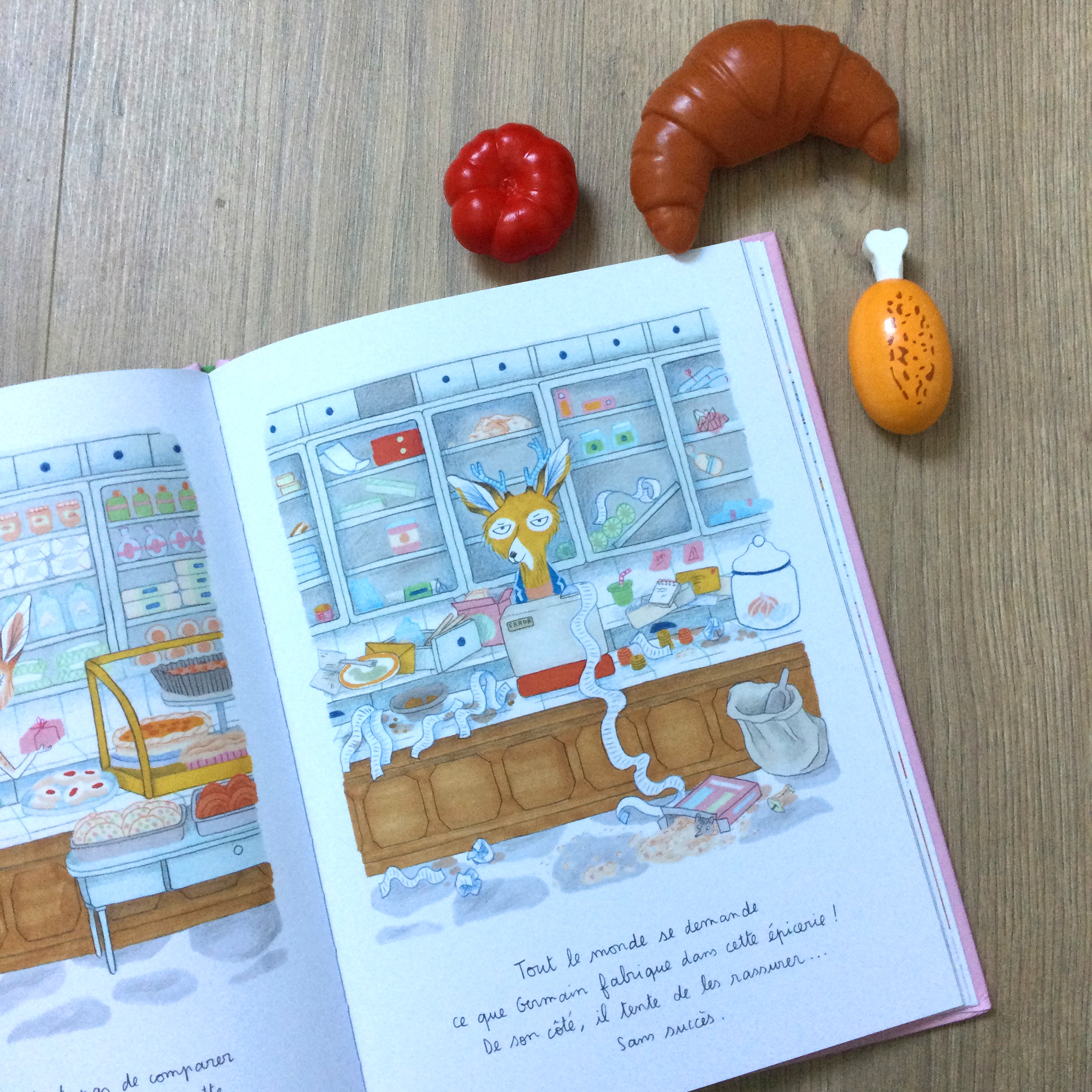 Cet album, superbement crayonné et écrit par Marie Novion nous parle de commérages et de suspicion qui seront heureusement dépassés pour laisser place à l’entraide et au partage. Les personnages anthropomorphes ont tous de jolies personnalités. C’est avec plaisir que l’on rentre dans le quotidien et les illustrations de L’AMICALE DU CHOCOLAT, un album particulièrement bien mis en page et donc très agréable à parcourir.