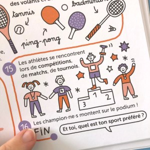 Enfin, j’aurais voulu mettre un TB ou un 10/10 très mérité… Malheureusement l’écriture inclusive, même ponctuelle, vient me piquer les yeux… Les illustrations très claires et « parlantes », les phrases courtes et les mots choisis avec justesse sont vraiment le fruit d’un travail sérieux mais pourquoi venir saboter la lecture, la fluidité (le génie de ce livre !) par moment ? C’est un paradoxe !
